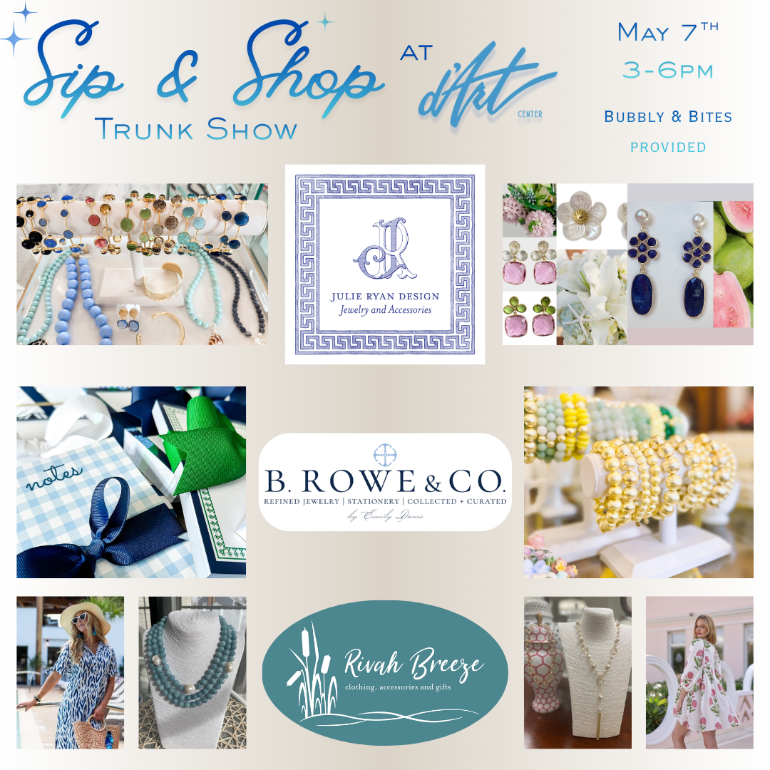 We’re thrilled to welcome back Julie Ryan Design and Rivah Breeze along with B. Rowe & Co. for another Sip & Shop Trunk Show! Join us on Thursday, May 7th from 3-6pm to browse their beautiful collections of jewelry, clothing, paper décor, accessories and gifts! Complimentary bubbly and bites will be provided.